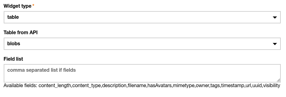 You can configure the list of the fields you want to show. If you don't know what they are, just let the widget display once and then, the list of all available fields will be displayed in the configuration window.