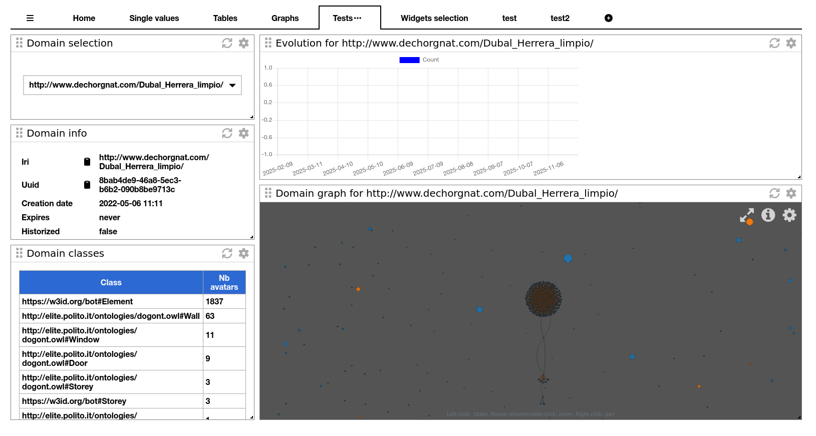 In a dashboard, we can use variables to make widgets more dynamic. By example, we can set a variable with the iri of a domain, and reuse this variable to make request in other widgets.